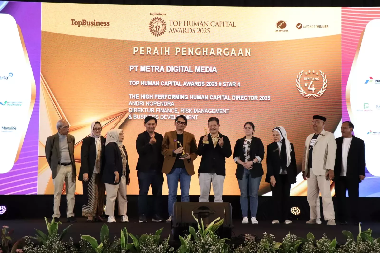 JAKARTA, 4 November 2025 - PT. Metra Digital Media (MDMedia) kembali menorehkan prestasi membanggakan dengan berhasil meraih TOP Human Capital (HC) Awards 2025 #4 Stars dan The High Performing Human Capital Director 2025.